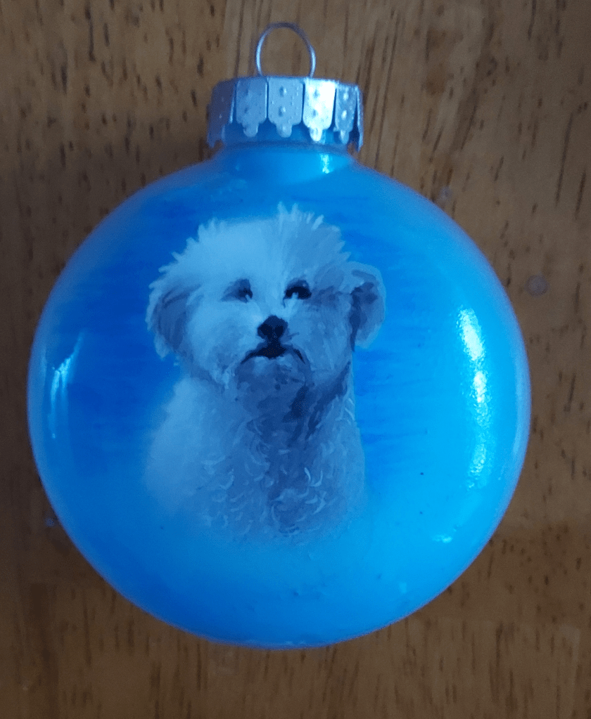 These are some of my custom ornaments primarily featuring pet portraits.